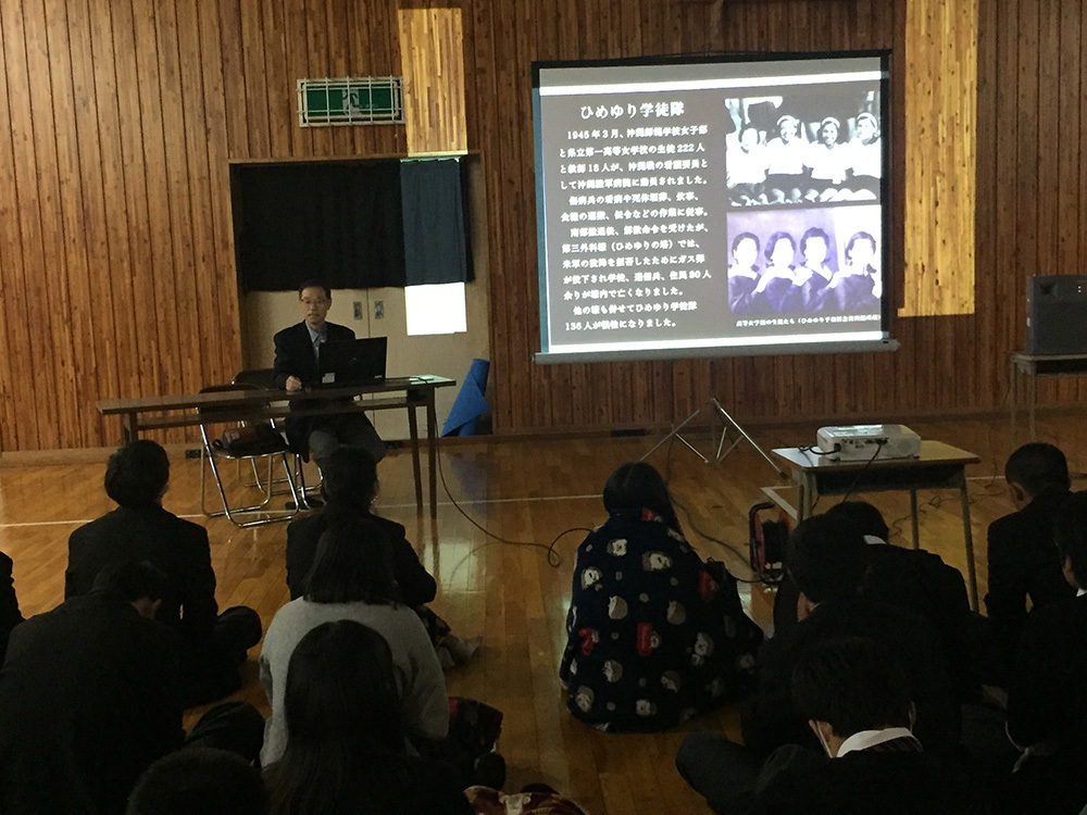 2019年11月14日、長野県の高遠高等学校の2年生を対象にして講演を行いました。修学旅行で沖縄