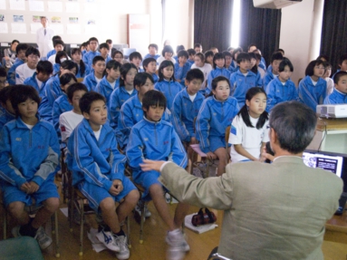 なにか雰囲気を変えないとと思い、生徒たちを全員起立させ一斉に伸びをさせた。これが効果があったのかその後は、生徒たちの表情も和らぎ、写真を興味深く見ているようだった。