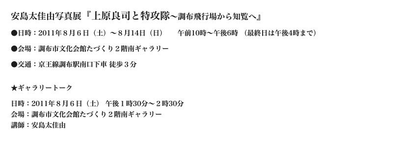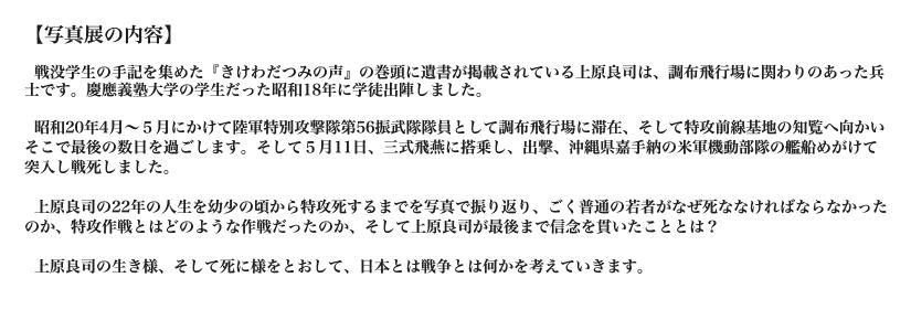 安島太佳由写真展「上原良司と特攻隊 〜調布飛行場から知覧へ」